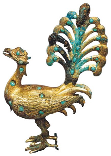 奉文堂旧藏汉青铜鎏金嵌松石朱雀