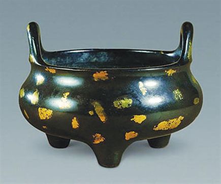 王世襄旧藏明崇祯冲天耳金片三足炉