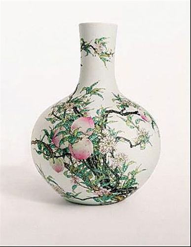 玫茵堂旧藏清乾隆粉彩九桃天球瓶